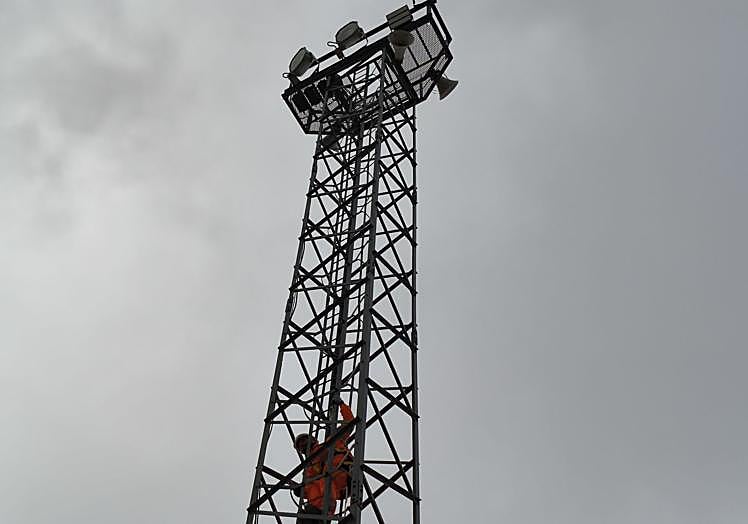 En la mañana de este lunes han comenzado los trabajos para llevar a cabo la renovación integral de la iluminación de las instalaciones deportivas municipales de Carbajosa. El proyecto contempla la instalación de 16 nuevos proyectores LED en el campo de fútbol, que forman parte de la renovación general del alumbrado que se extenderá a las tres pistas exteriores de tenis, la pista de pádel y los accesos de las instalaciones.