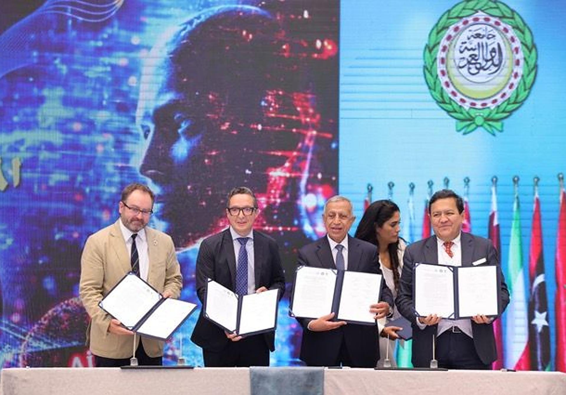 El rector Juan Manuel Corchado participó en la firma del acuerdo que tuvo lugar en el contexto del First Annual Aral Forum on Artificial Intelligence, presidido por el Dr. Ahmed Aboul Gheit, secretario general de la Liga Árabes. El evento, celebrado del 27 al 28 de agosto, estuvo organizado por la Academia Árabe de Ciencia, Tecnología y Transporte Martítimo (AASTMT), en colaboración con la Secretaría General de la Liga de los Estados Árabes.