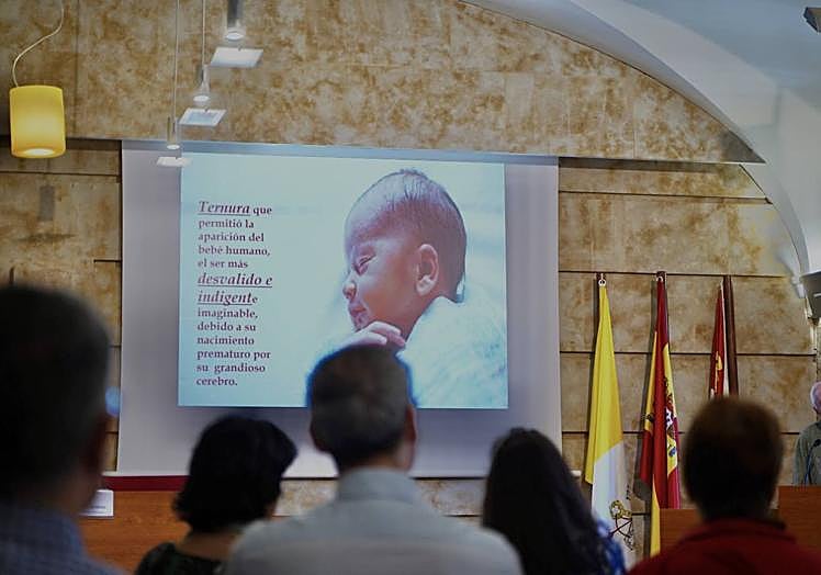 Posteriormente, el voluntario Juan José García Carabias ha pronunciado la conferencia 'El cuidado, la revolución de la ternura'. Durante su intervención, García ha realizado un repaso desde el origen de la vida en la tierra y a lo largo de la historia de la humanidad, donde la ternura y el cuidado por el otro siempre han estado presentes. Para el ponente, aunque actualmente la sociedad está concienciada por el cuidado de la tierra o el cambio climático, sin embargo, «se necesita profundizar más en el cuidado del otro, en respetar con cariño y dejarse tocar por la historia de vida del que lo necesita». Para ello, García cree necesario reconocer a la otra persona como un ser especial y plantearse un modo de estar en el mundo, en el que la persona que cuida al otro se construye y se realiza.