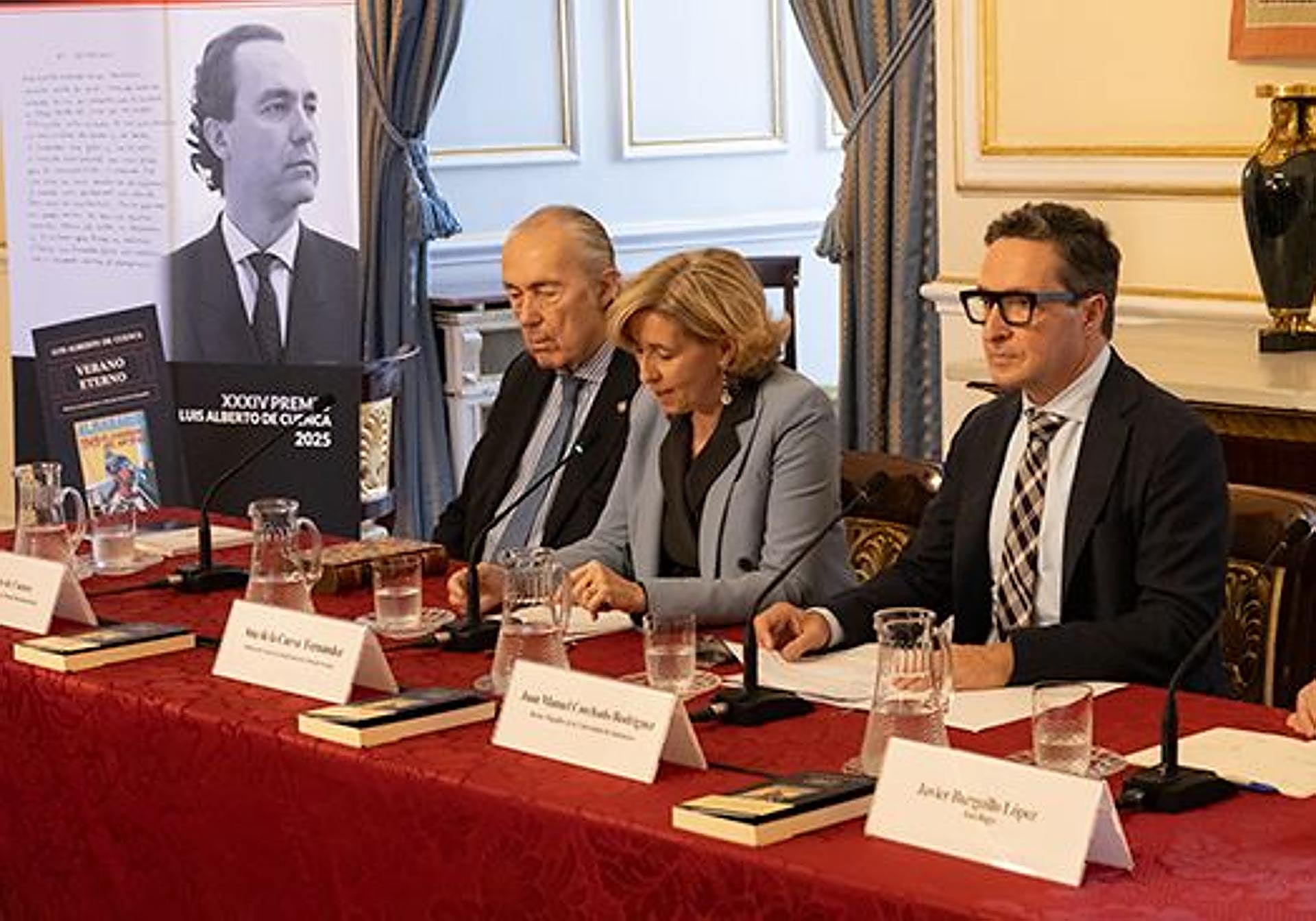 En la rueda de prensa han intervenido la presidenta de Patrimonio Nacional, Ana de la Cueva; el rector de la Universidad de Salamanca, Juan Manuel Corchado, y Javier Burguillo, doctor de Filología Hispánica, profesor del Departamento de Literatura Española e Hispanoamericana de la Universidad de Salamanca, y antólogo, además del poeta galardonado.