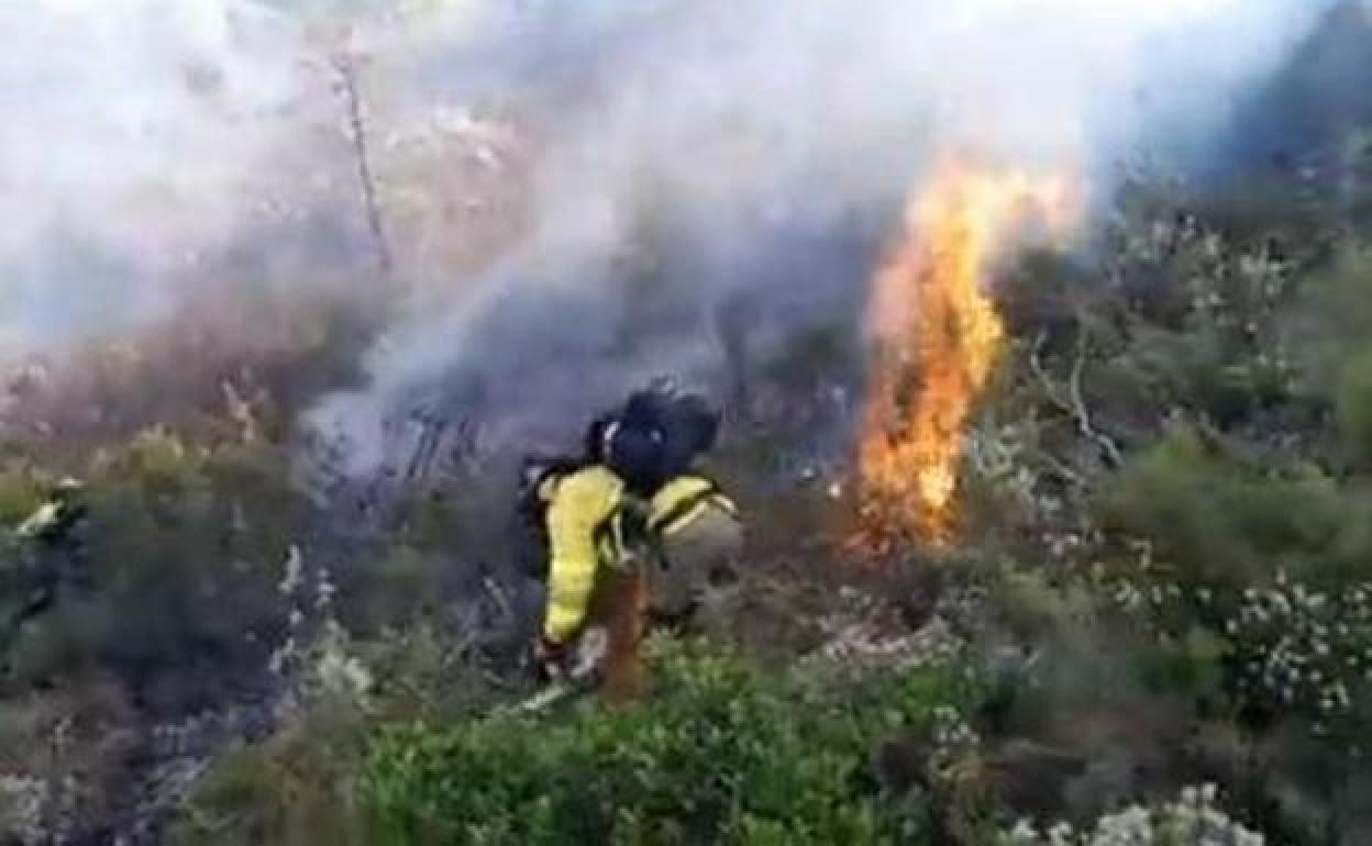 Un efectivo del cuerpo de bomberos trabajando sobre el terreno. D.S.