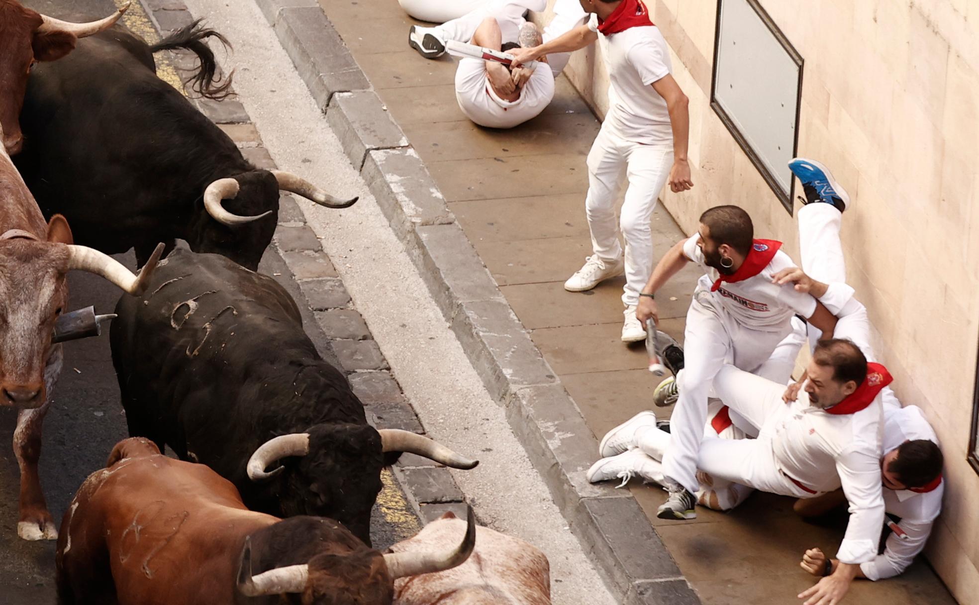 Los toros de la ganadería de Jandilla han sido los protagonistas del antepenúltimo encierro de este año por las calles de Pamplona
