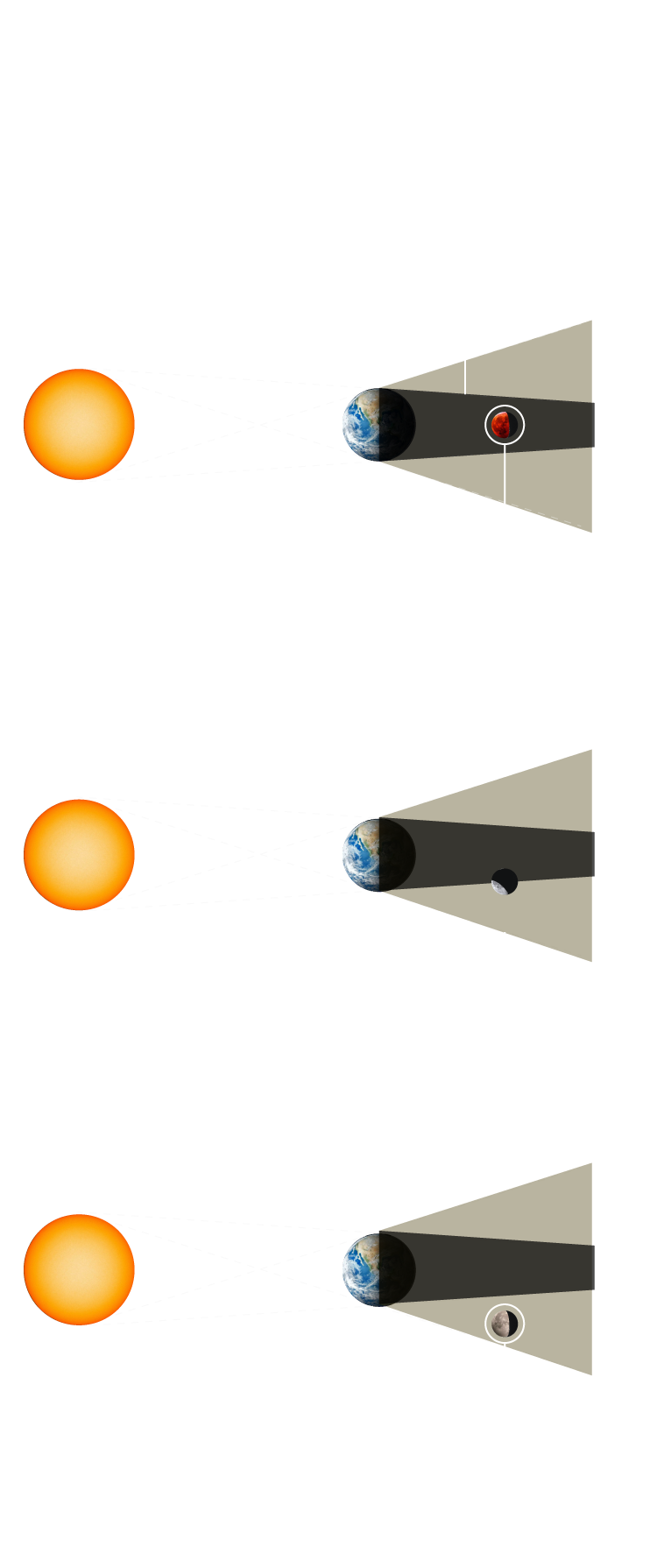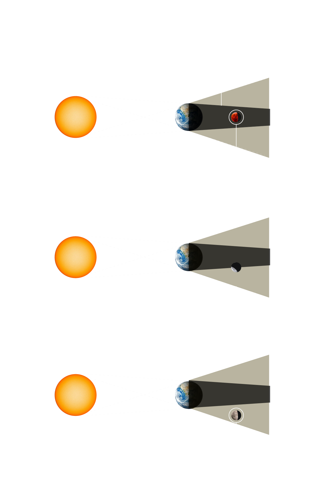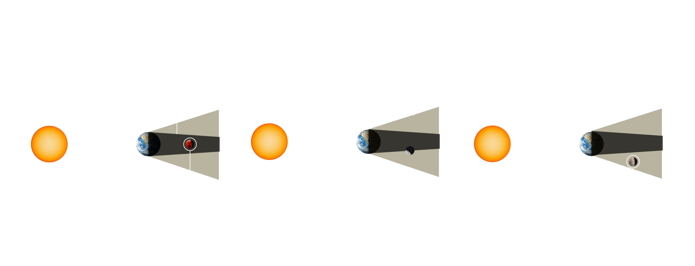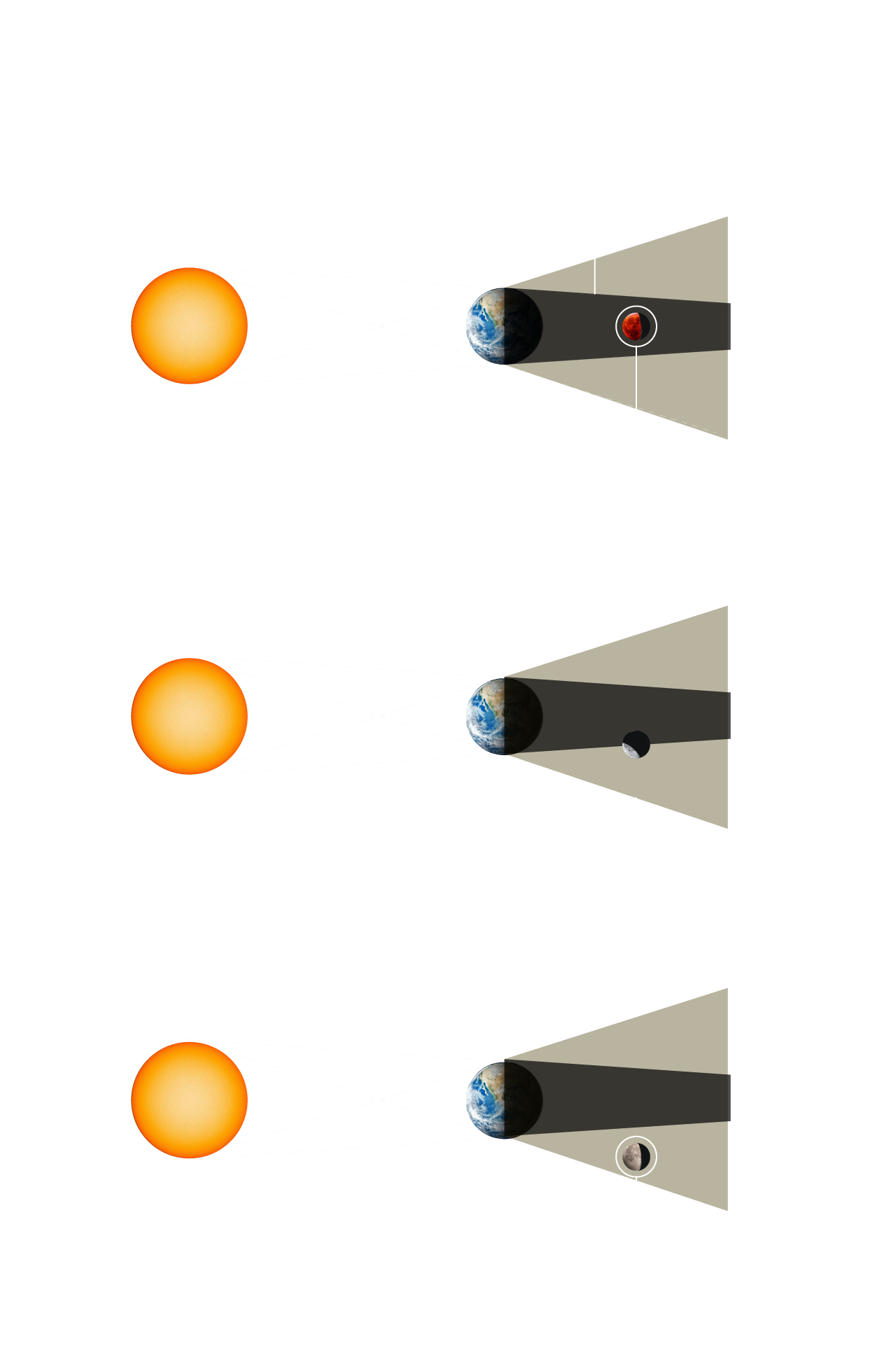 Debido al tamaño angular del Sol, la sombra que proyecta la Tierra consta de dos zonas y la umbra es donde no existe radiación solar directa