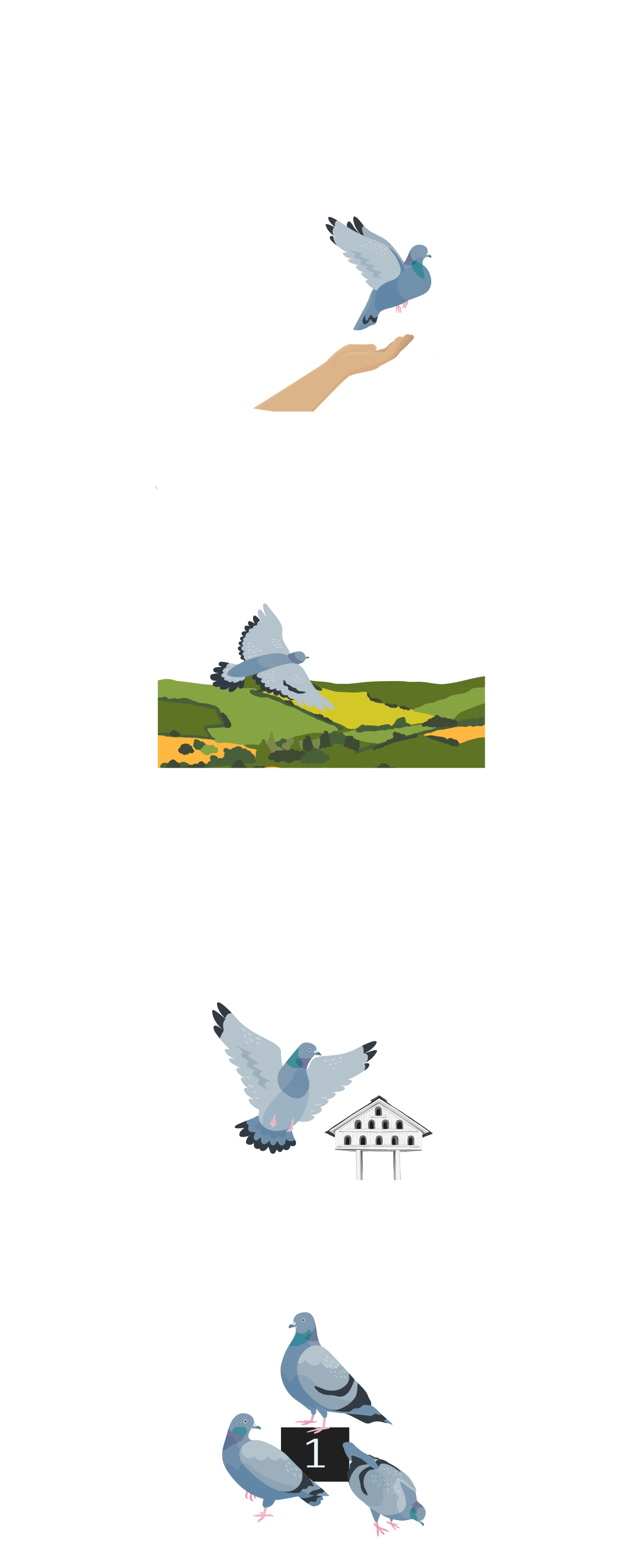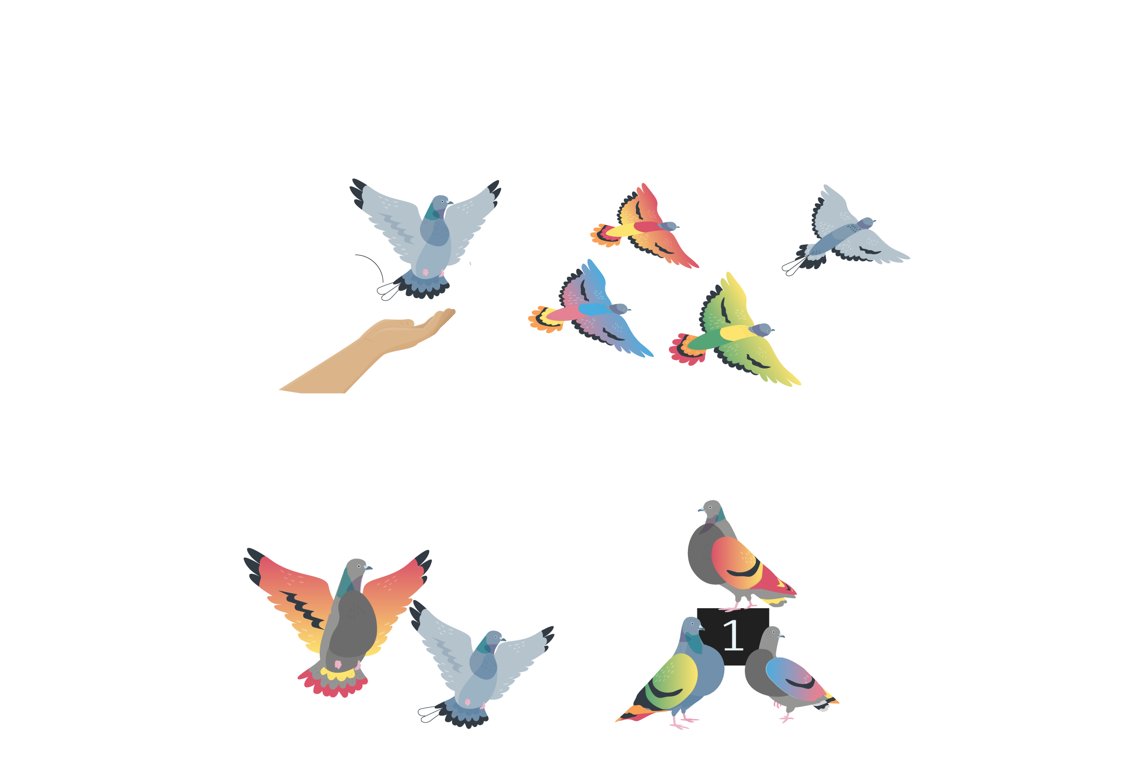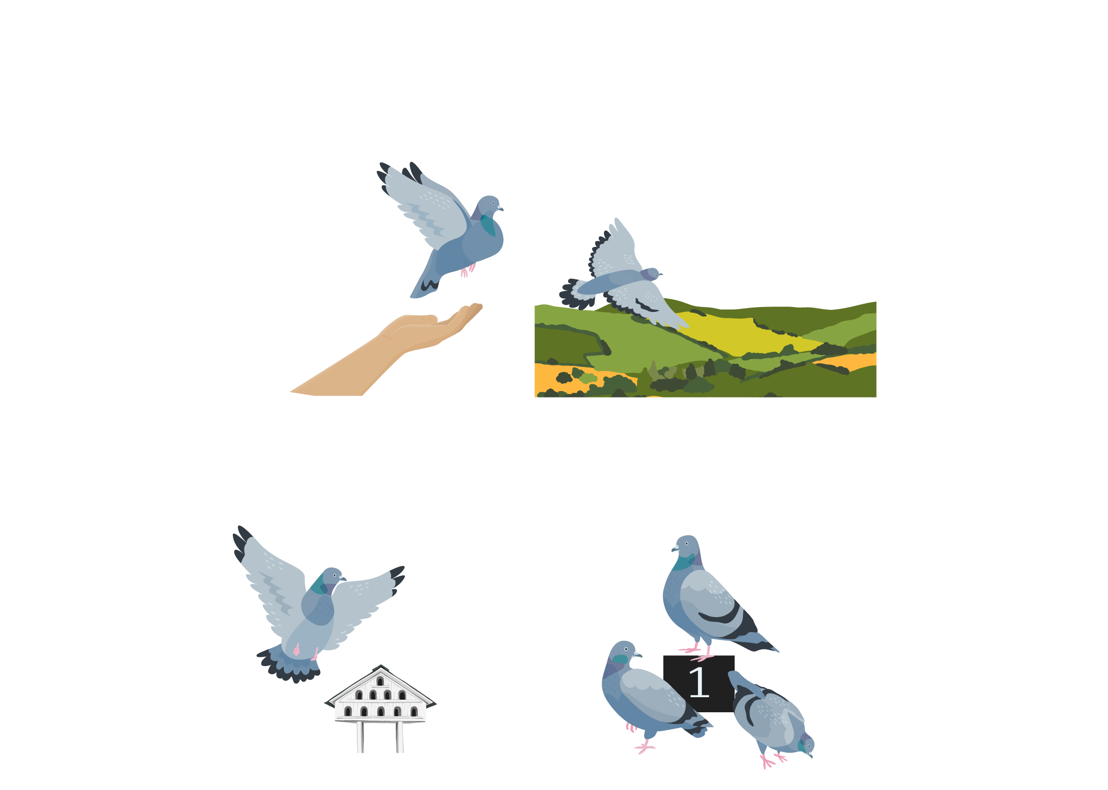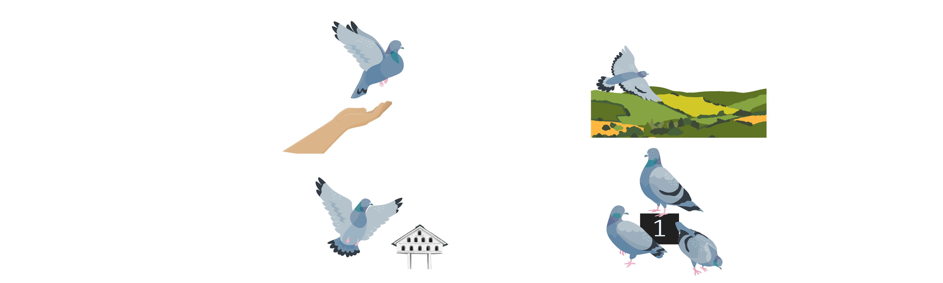 Aquí el objetivo es la velocidad, orientación y resistencia: las palomas son llevadas a grandes distancias y deben regresar a su palomar lo más rápido posible.