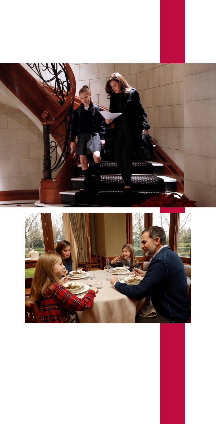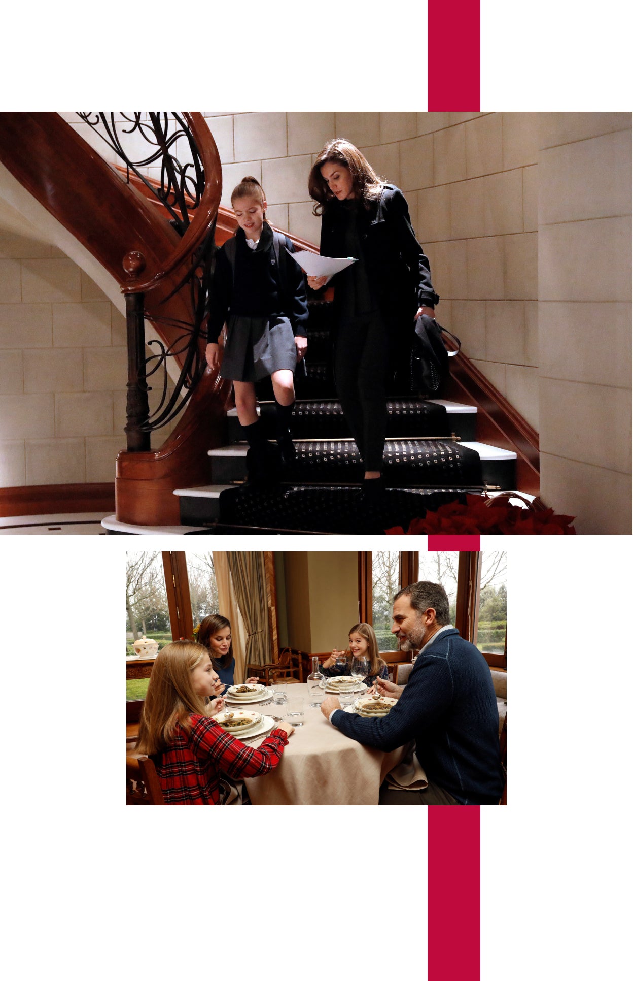 «Las prioridades para la Reina son su familia y el apoyo a la labor institucional del Rey. Por tanto, ella se ocupa diariamente de sus hijas y trata de hacer compatible sus tareas como madre con su trabajo al lado del Rey don Felipe en determinados actos oficiales». Estas palabras aparecen en su biografía en la página web de la Casa Real. El día en que Felipe VI fue proclamado rey, en la ceremonia en el Congreso, doña Letizia siguió al pie de la letra ese guión. Estuvo pendiente en todo momento de su marido, y en especial de las niñas, a las que corregía de continuo. Esa fue una constante en las primeras apariciones de Leonor y Sofía en su nuevo estatus. Hoy, la princesa y la infanta ya se desenvuelven con soltura en actos oficiales.