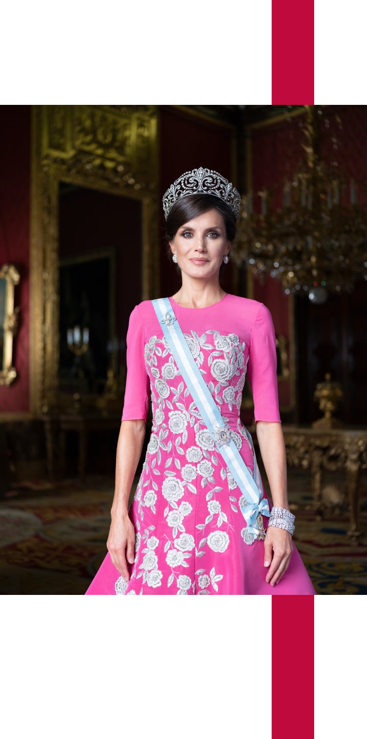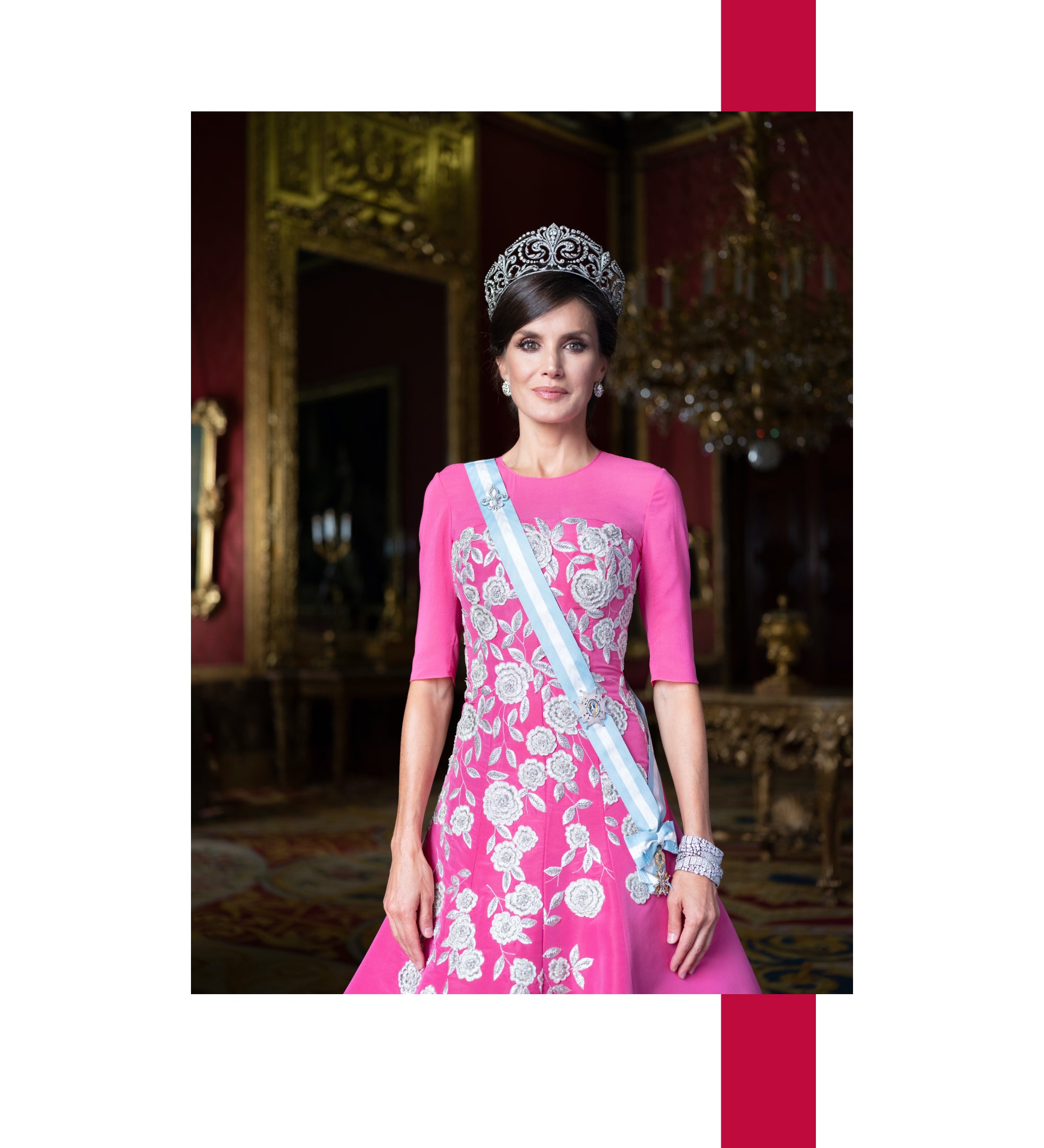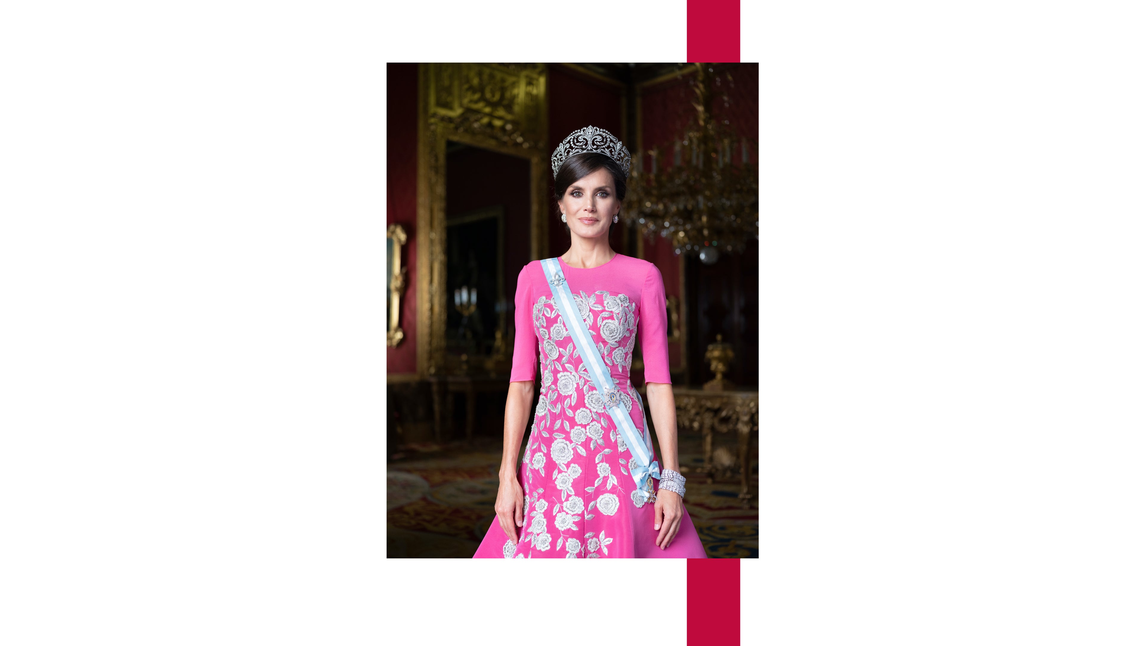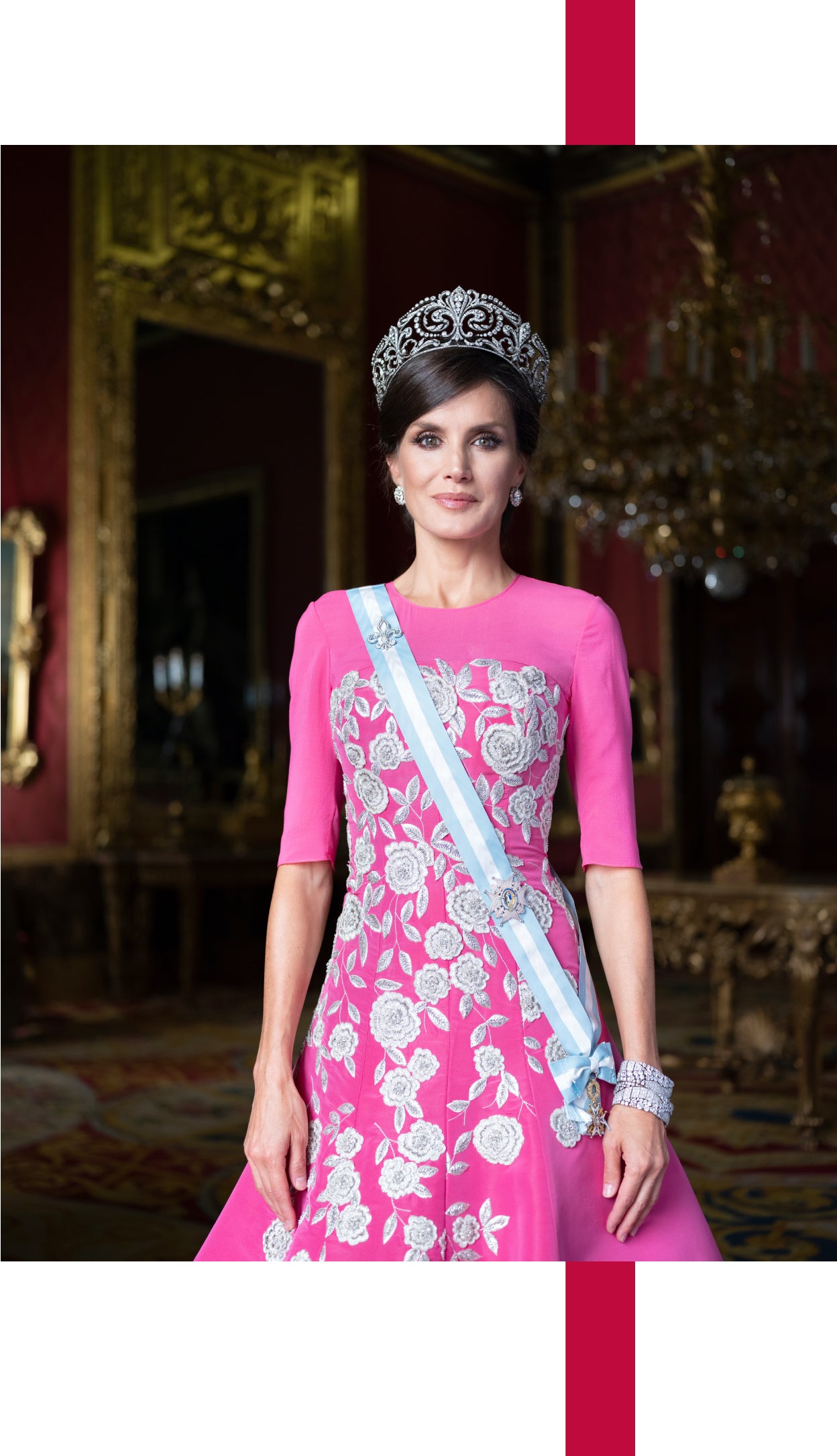 Retrato oficial de la reina Letizia vestida de gala. RC